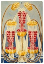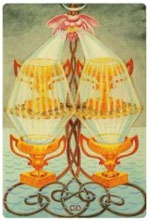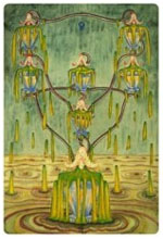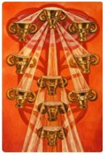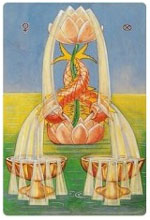 As the Ace of Wands is primarily Phallic, so the Ace of Cups is primarily Vaginal. These two suits of course, are complementary in nature. While the Ace of Wands produces the seed and is actively forthcoming in nature, this card is receptive and passive. |