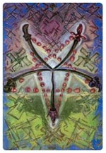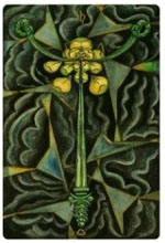 The seed source of the intellect is a sword; again, phallic in design. at this level of consciousness, we are not as close to the life source as with the Ace of Wands. And get with this energy, we interpret what comes from there. We then organize this created data into a viable system. |
