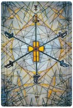 Intellectual Mercury (the ‘Trickster’) rules this sephira and the largess that Jupiter brings to the Mercury-ruled Gemini repeats the theme of the previous card--too much intellect. Here the intellect gets in the way rather than stumbling over it s own alienating qualities. Here it is a bit more pompous. |