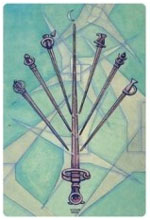 Jupiter brings to Libra the benevolent balance that the Scales need to retain their composure. And the sephira of Mercy makes that a double Jupiter as it also represents an easement as described in the previous analysis of the sephira with Wands and Cups. Therefore ‘Truce’ is the surrender of the intellect to more noble gestures. |